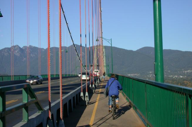 radlen auf der lions gate bridge [vancouver : 29.10.2002]