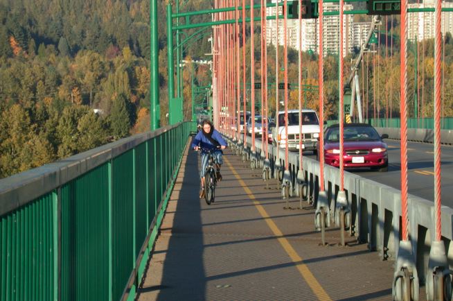anstrengendes radeln auf der lions gate bridge [vancouver : 29.10.2002]